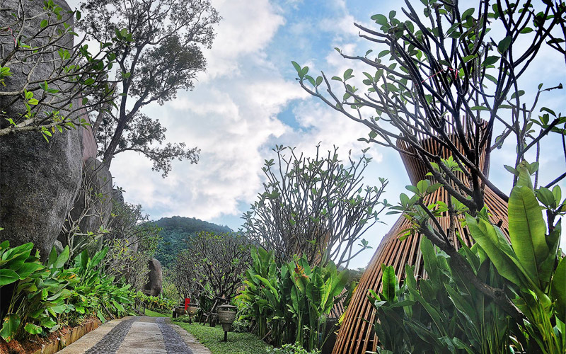 Không gian cảnh quan chính là yếu tố tạo nên trải nghiệm nghỉ dưỡng khác biệt. Chi phí xây dựng hệ thống cây xanh, hồ cá, đài phun nước, đường đi dạo, và các khu vực nghỉ chân ngoài trời có thể chiếm từ 10% đến 20% tổng chi phí xây dựng resort.
